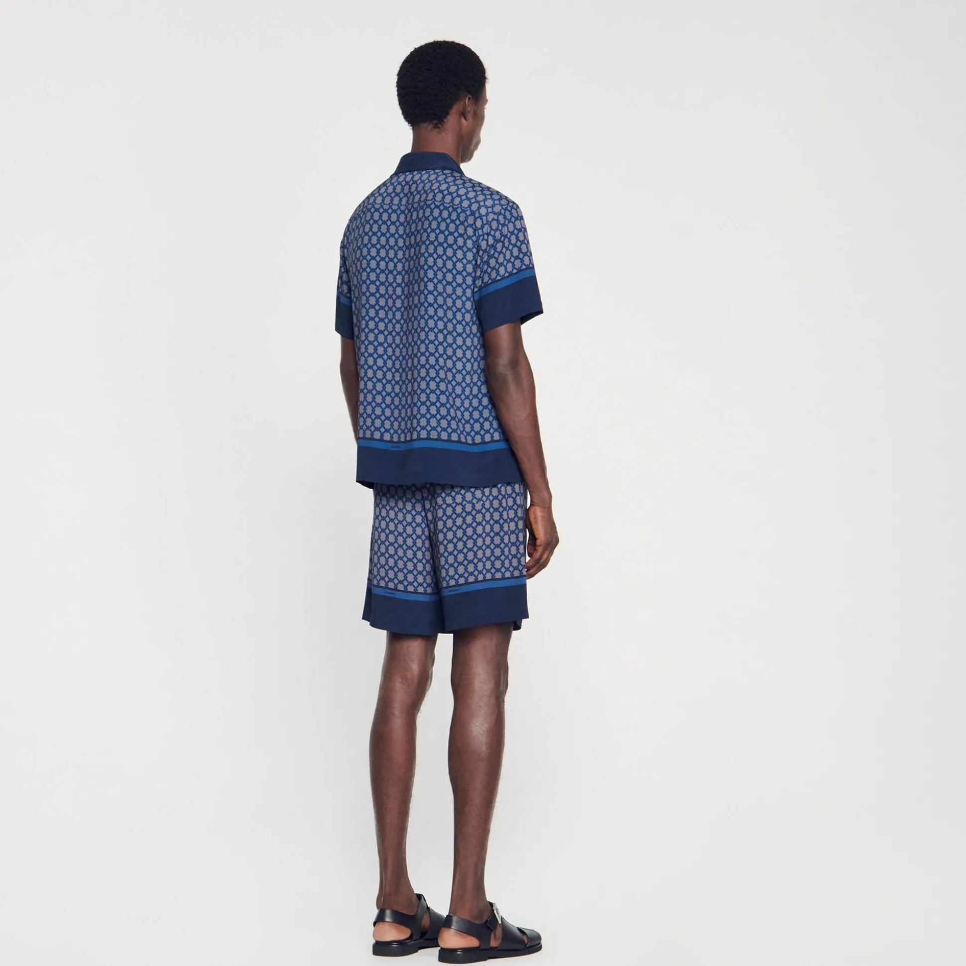 Camisa De Manga Curta Com Gola Italiana, Fecho De Botão E Estampa De Cruz. Camisa Masculina Sandro Gola Italiana Mangas…