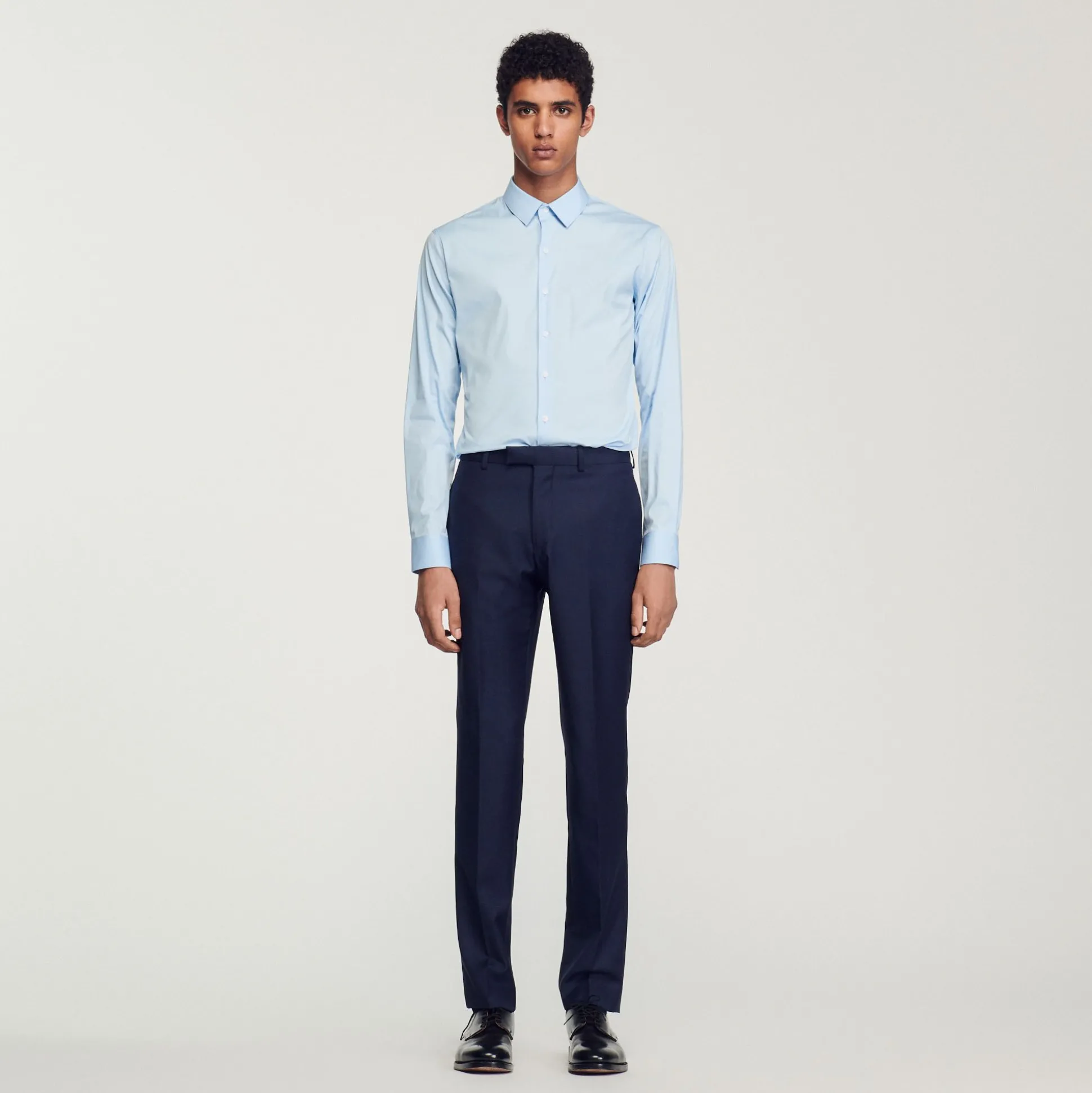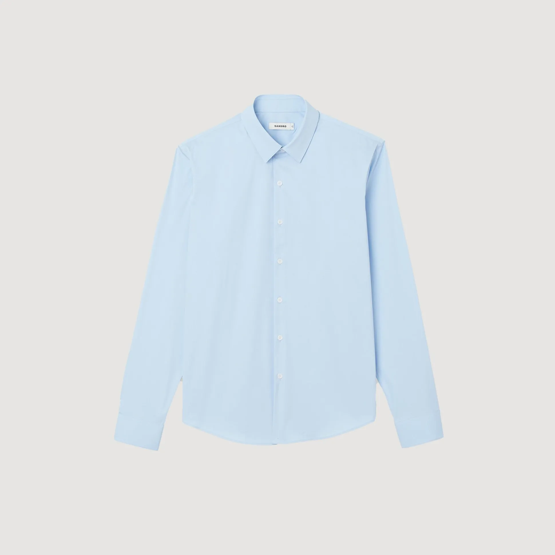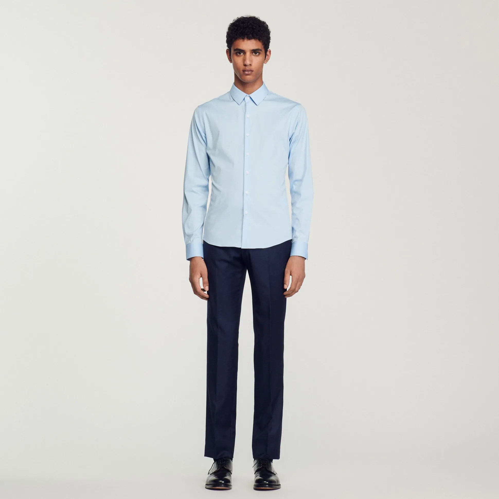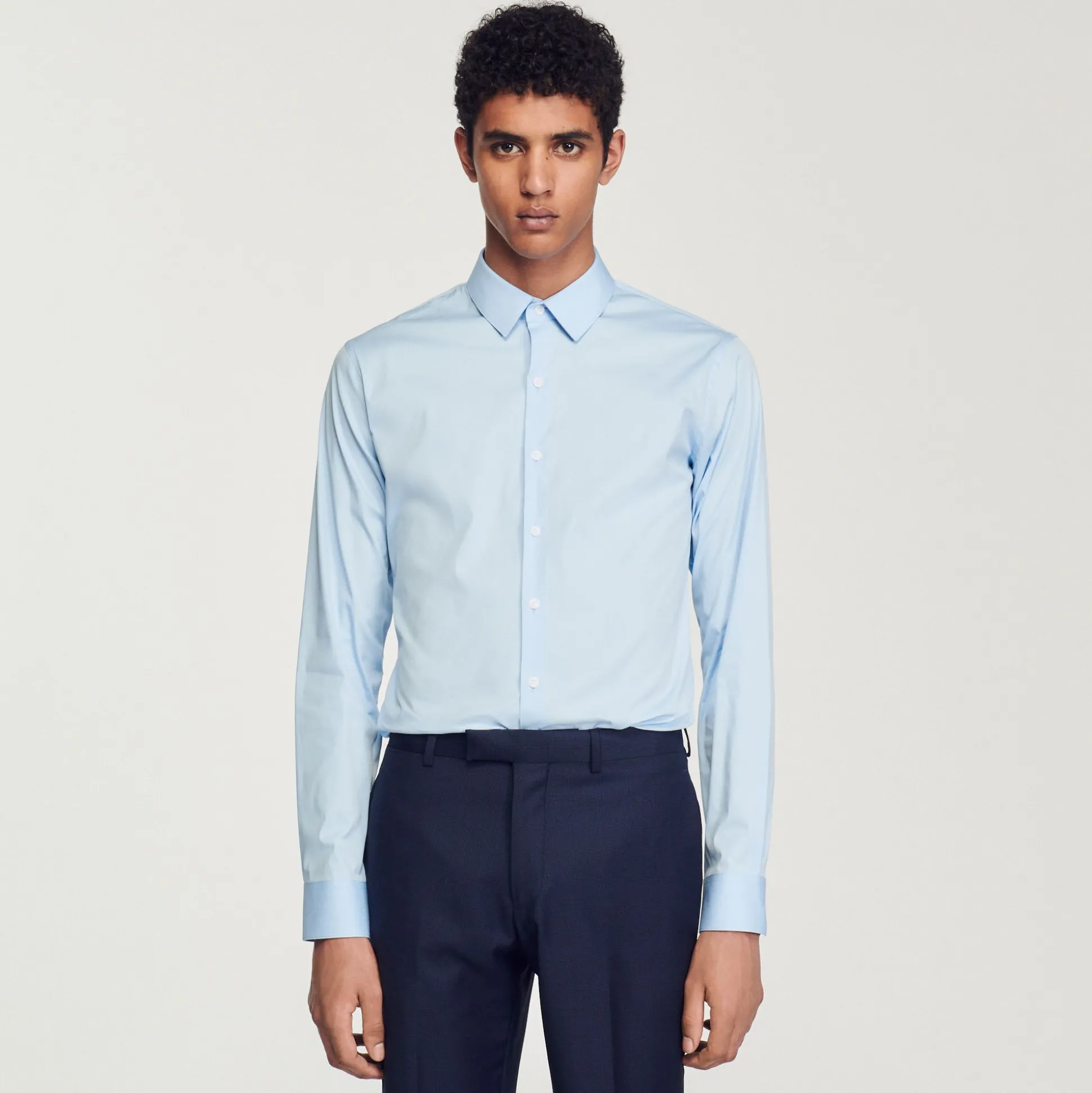 Camisa Justa De Algodão Stretch Com Mangas Compridas, Punhos Abotoados, Gola Clássica E Fecho De Botão.