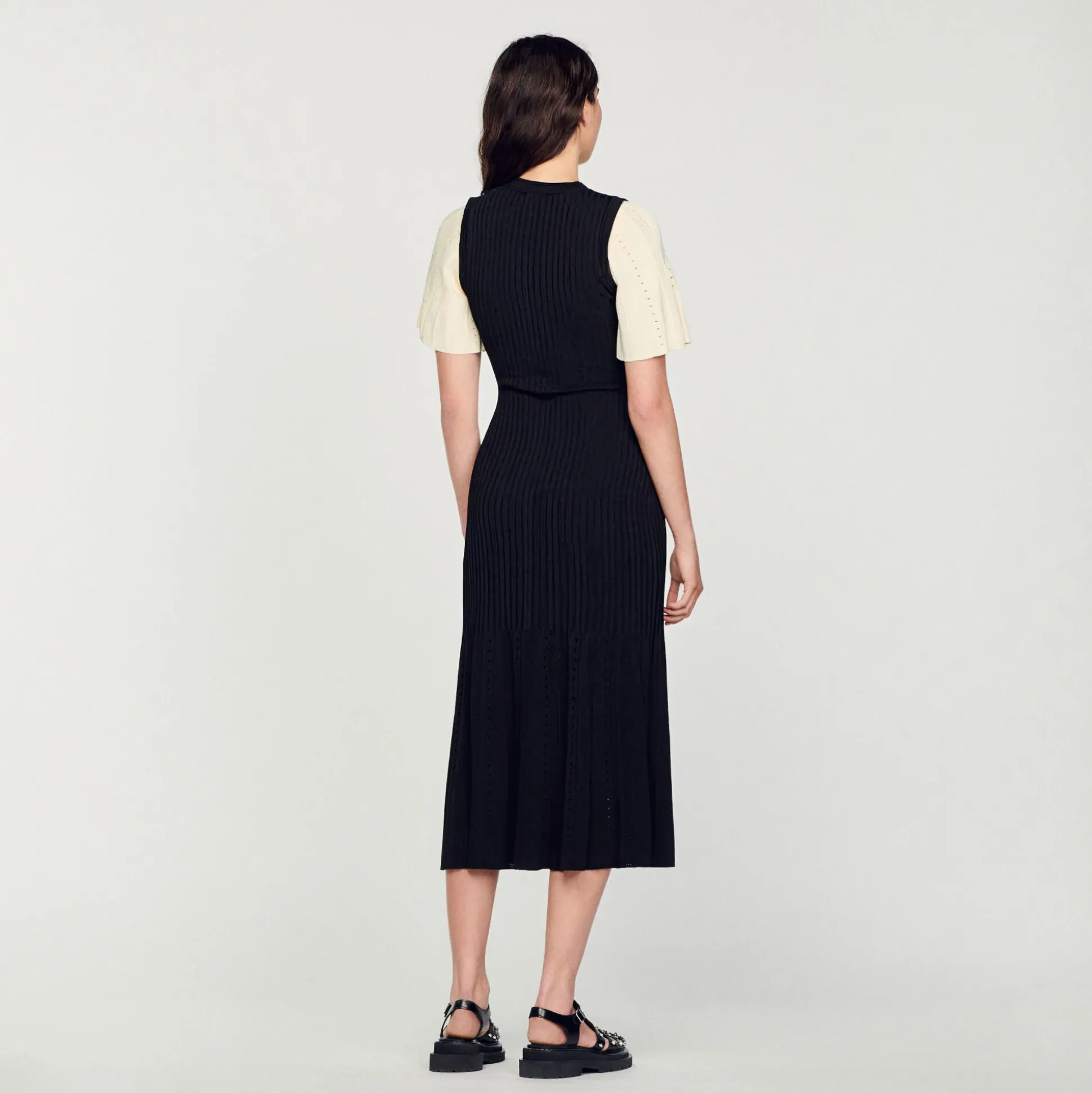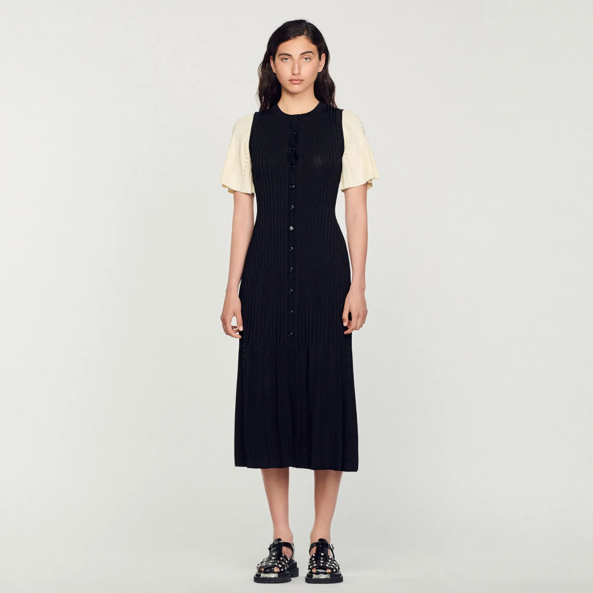 - Vestido Midi De Malha Canelada Sandro Para Mulheres